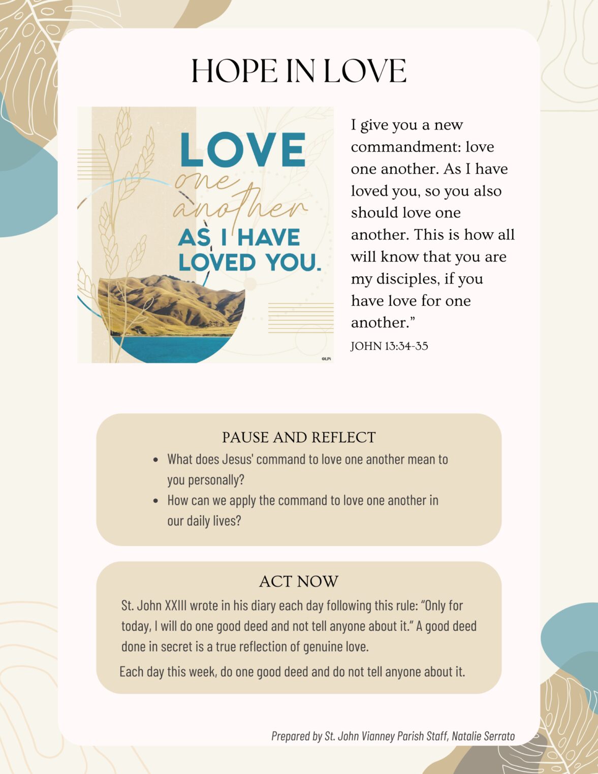 Father in heaven, may the faith you have given us in your son, Jesus Christ, our brother, and the flame of charity enkindled in our hearts by the Holy Spirit, reawaken in us the blessed hope for
